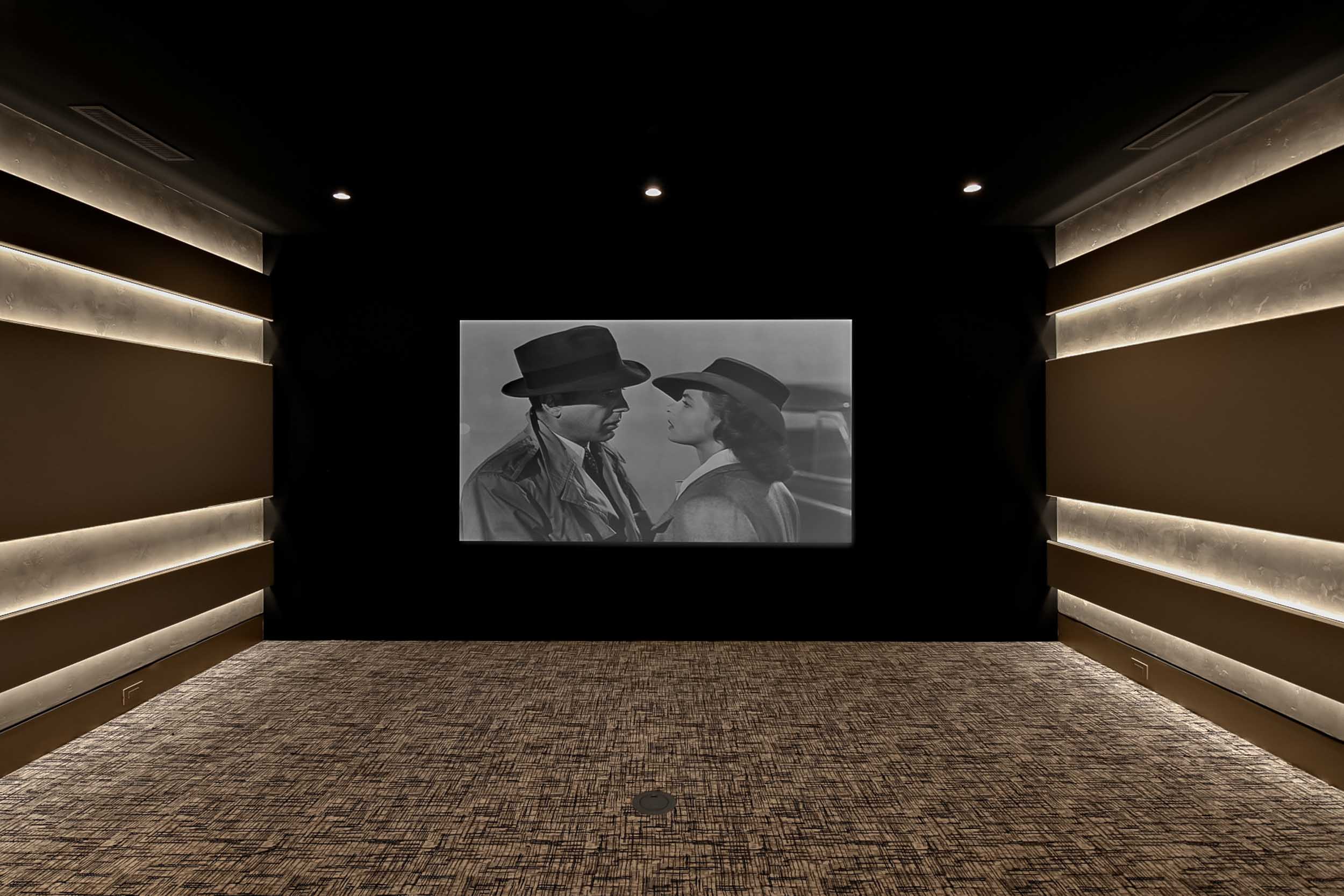 ON THE LOWER LEVEL, EXPOSED CONCRETE WALLS FRAME THE WINE ROOM AND LOUNGE, HIGHLIGHTED BY A LARGE SKYLIGHT INTEGRATED INTO THE BOTTOM OF THE POOL TO HELP ILLUMINATE THE LOUNGE BELOW.