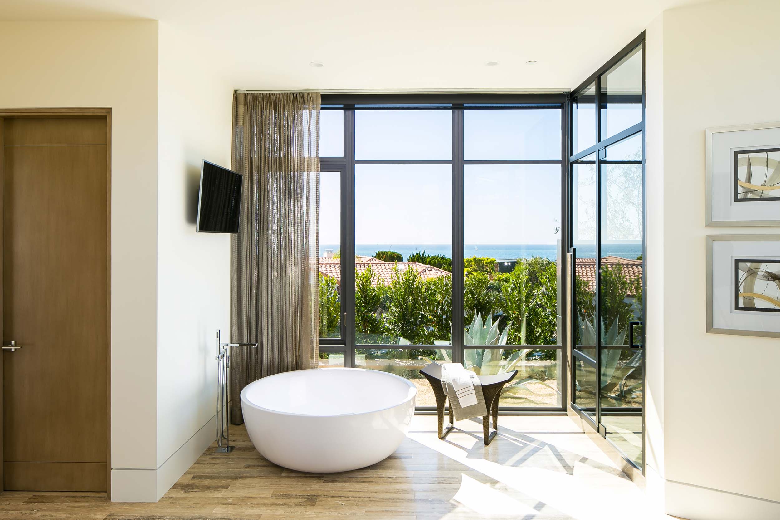 The entry and pool alignment was placed on axis with the Newport Beach harbor entrance and sunset views.