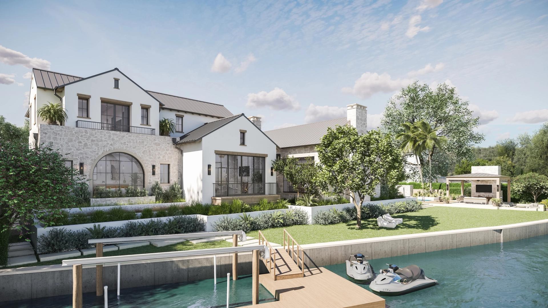 The Details: This pavilion-style modern ranch is organized into distinct wings and structures, each thoughtfully oriented to capture light and views of boats and yachts cruising by.