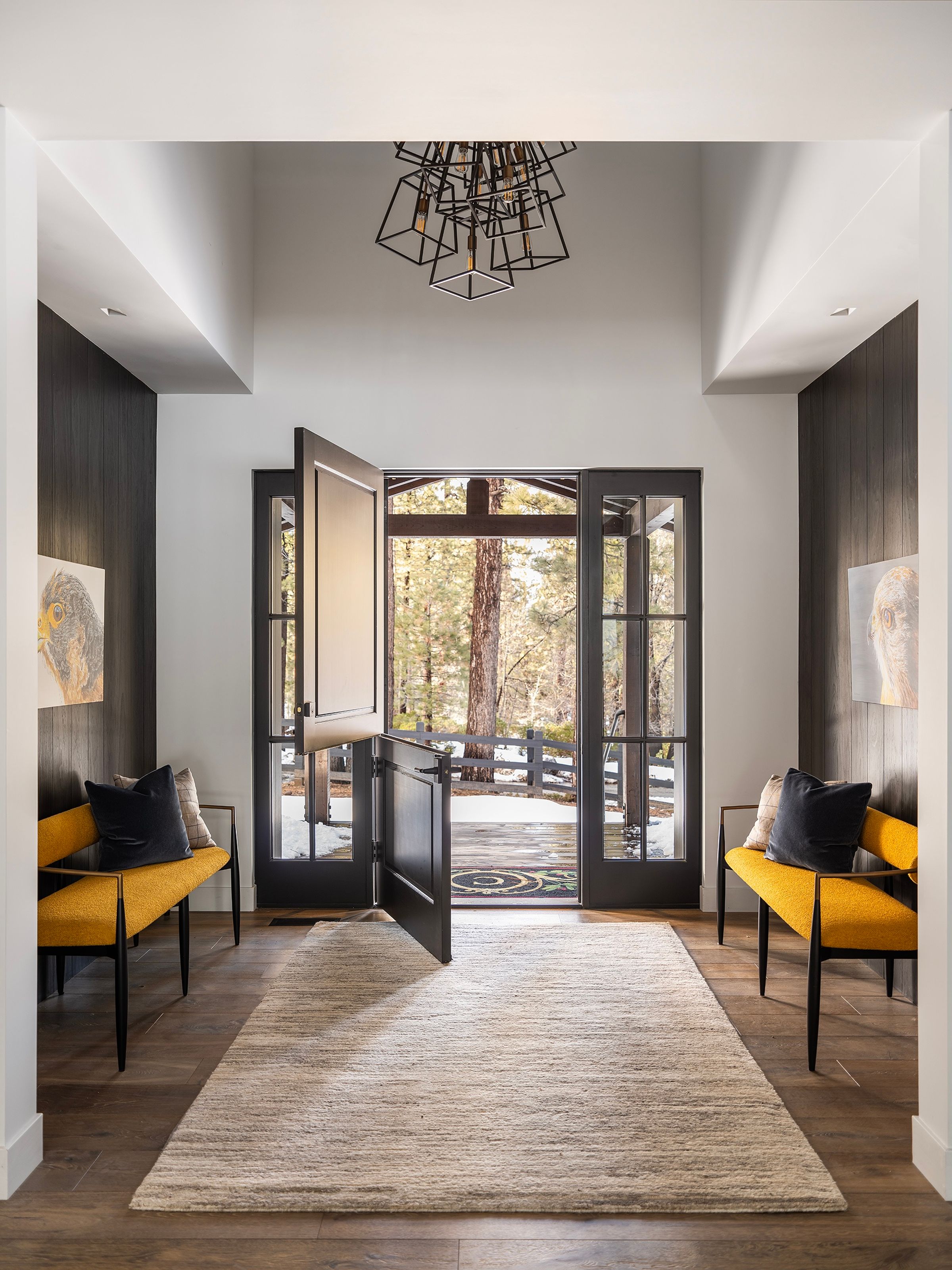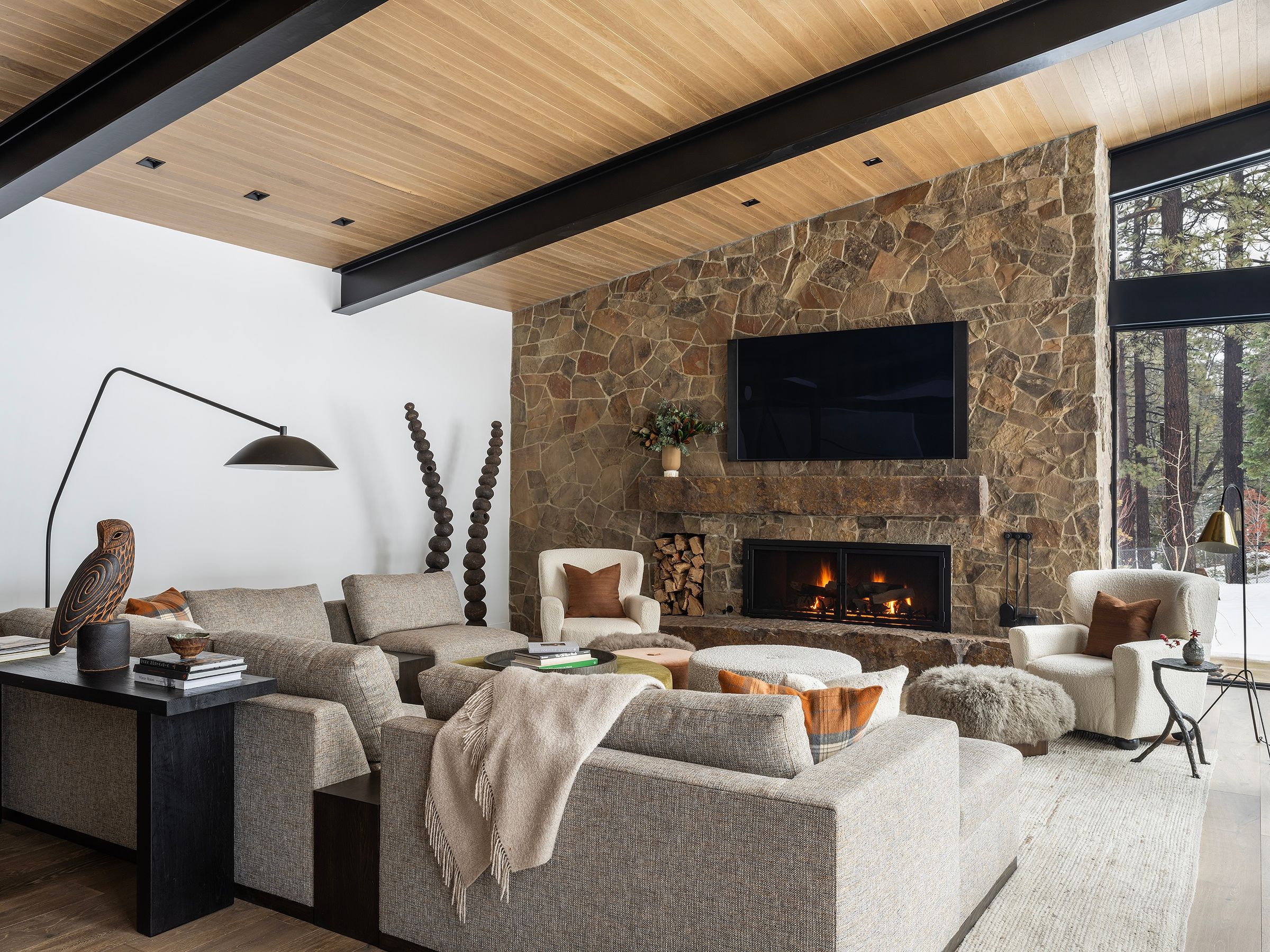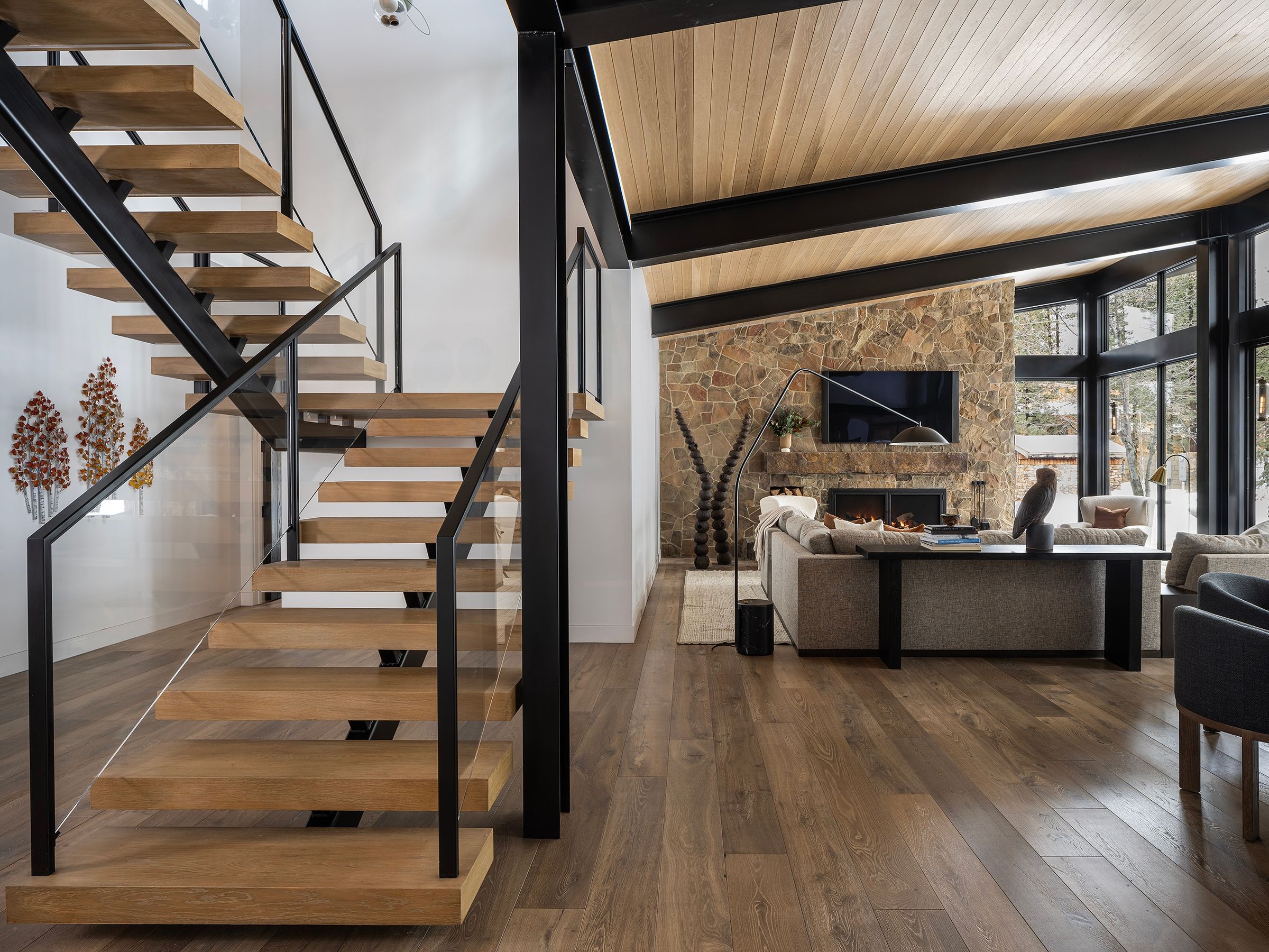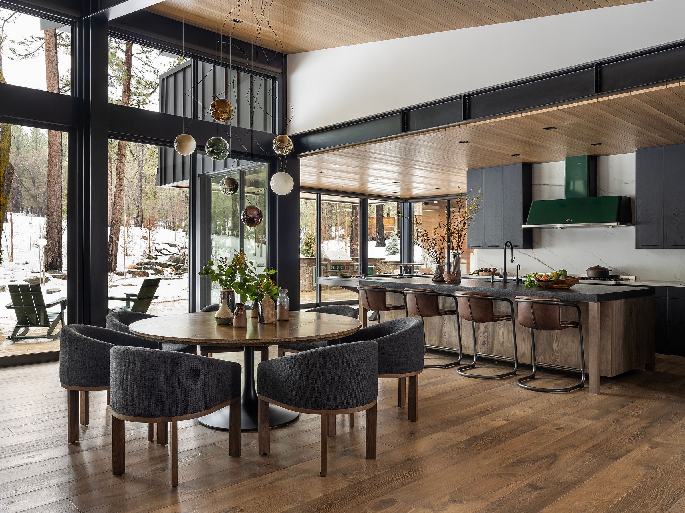 A 1926 fox tower is reimagined as an après-ski compound comprising a primary residence, two cabins, and a glass pavilion.