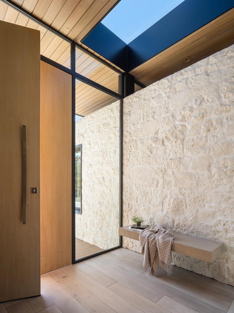 Passive and active solar strategies, including roof-mounted photovoltaic panels and automated shading, reduce energy use, while design decisions were informed by sustainability and life-cycle considerations—maintenance and embodied-energy were considered via alternative materials such as composite panels (rather than natural stone), aluminum composite metals, and FSC-certified lumber, implemented to reduce the impacts of new construction and promote longevity.