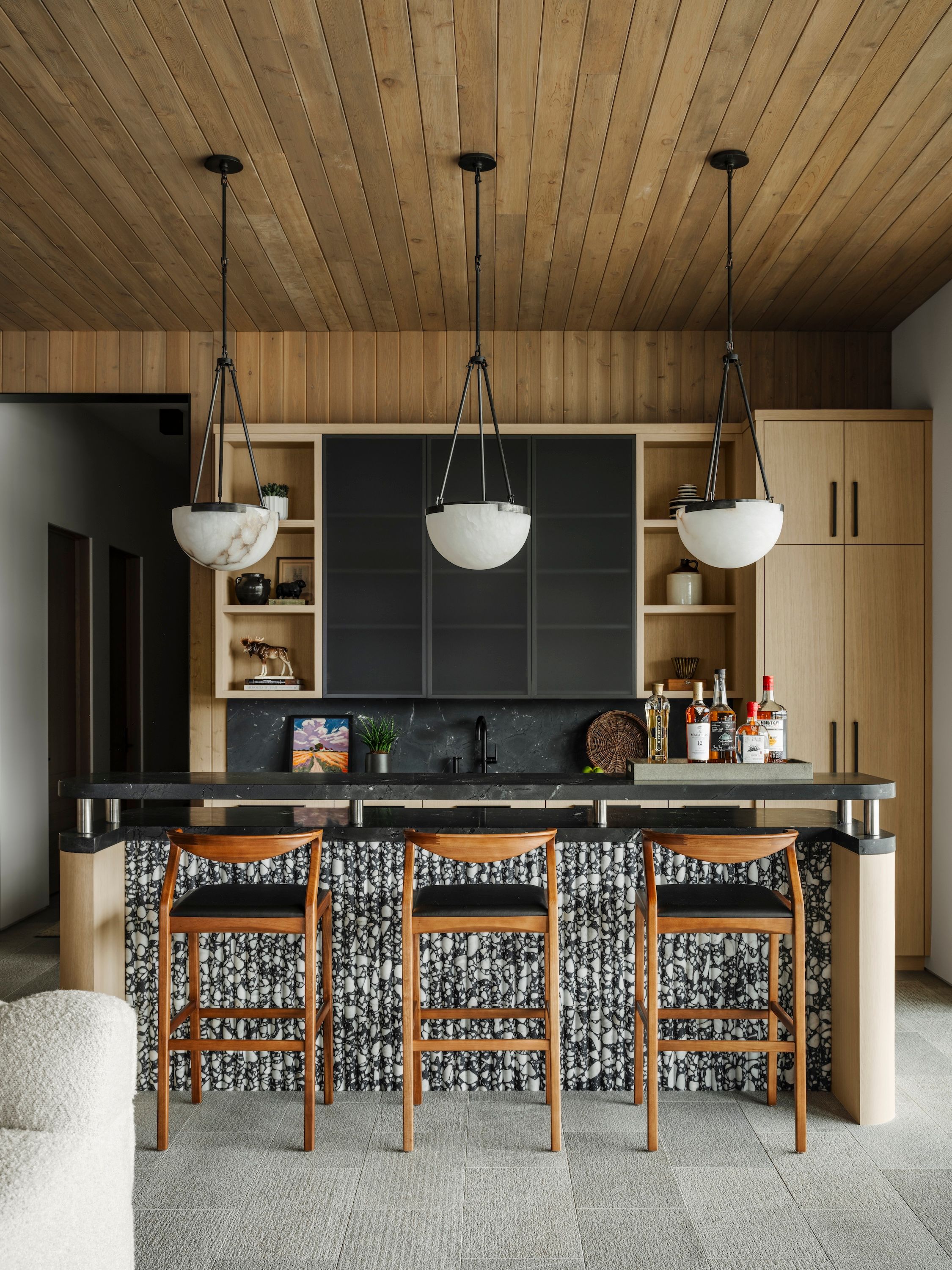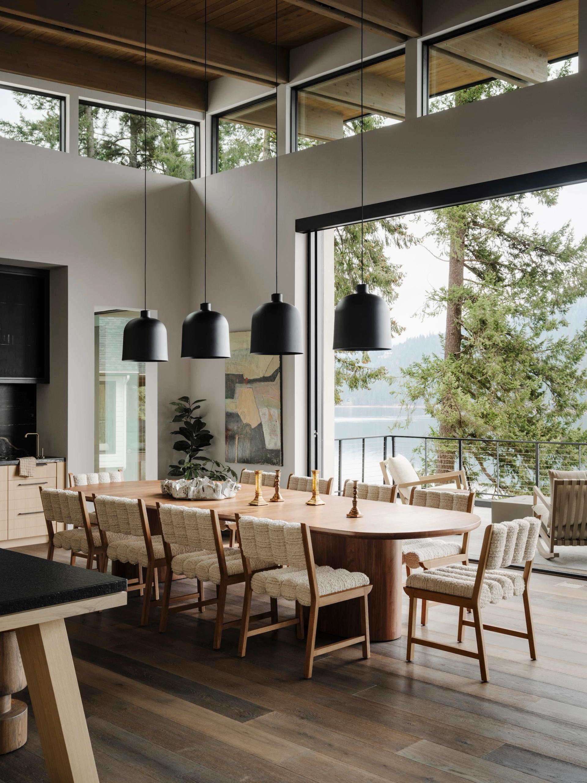 For her family’s dream vacation home, designer Denise Morrison discovered three rare, consecutive lots along Hayden Lake, creating a singular opportunity to craft a retreat that comfortably hosts 16 guests across generations. Steps from the water and embraced by forested pines, the home is designed as both a restful sanctuary and a place for family gatherings, where grandchildren can play and memories are made amid Idaho’s unspoiled landscapes. The architecture and architectural materials palette embrace the lakeside setting, providing Morrison with a foundation to create a layered, collected aesthetic by balancing antique and contemporary elements. The proximity to the Sawtooth Range of the Rocky Mountains and expansive protected wilderness ensures a sense of permanence, making the home a lasting family legacy.