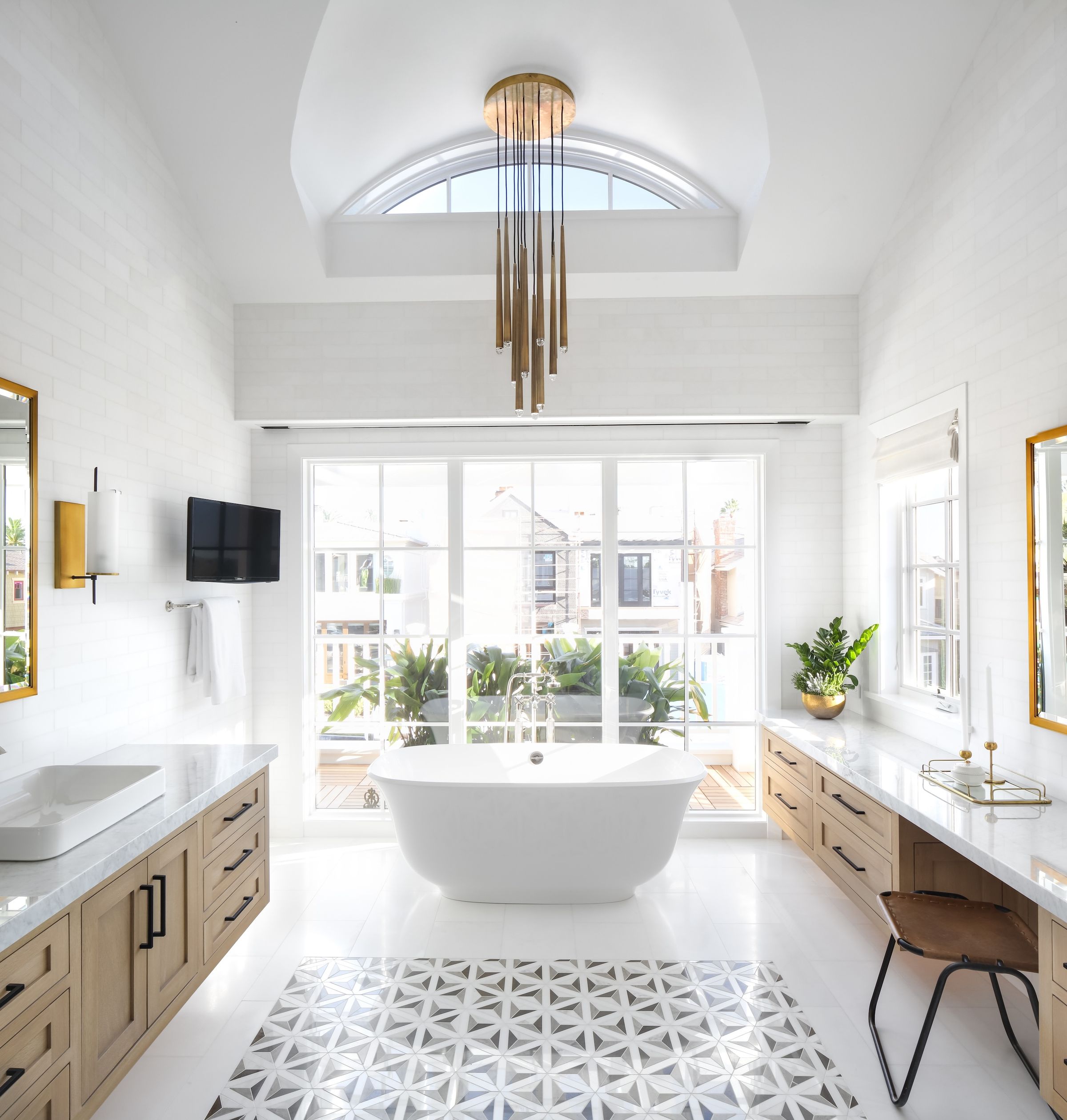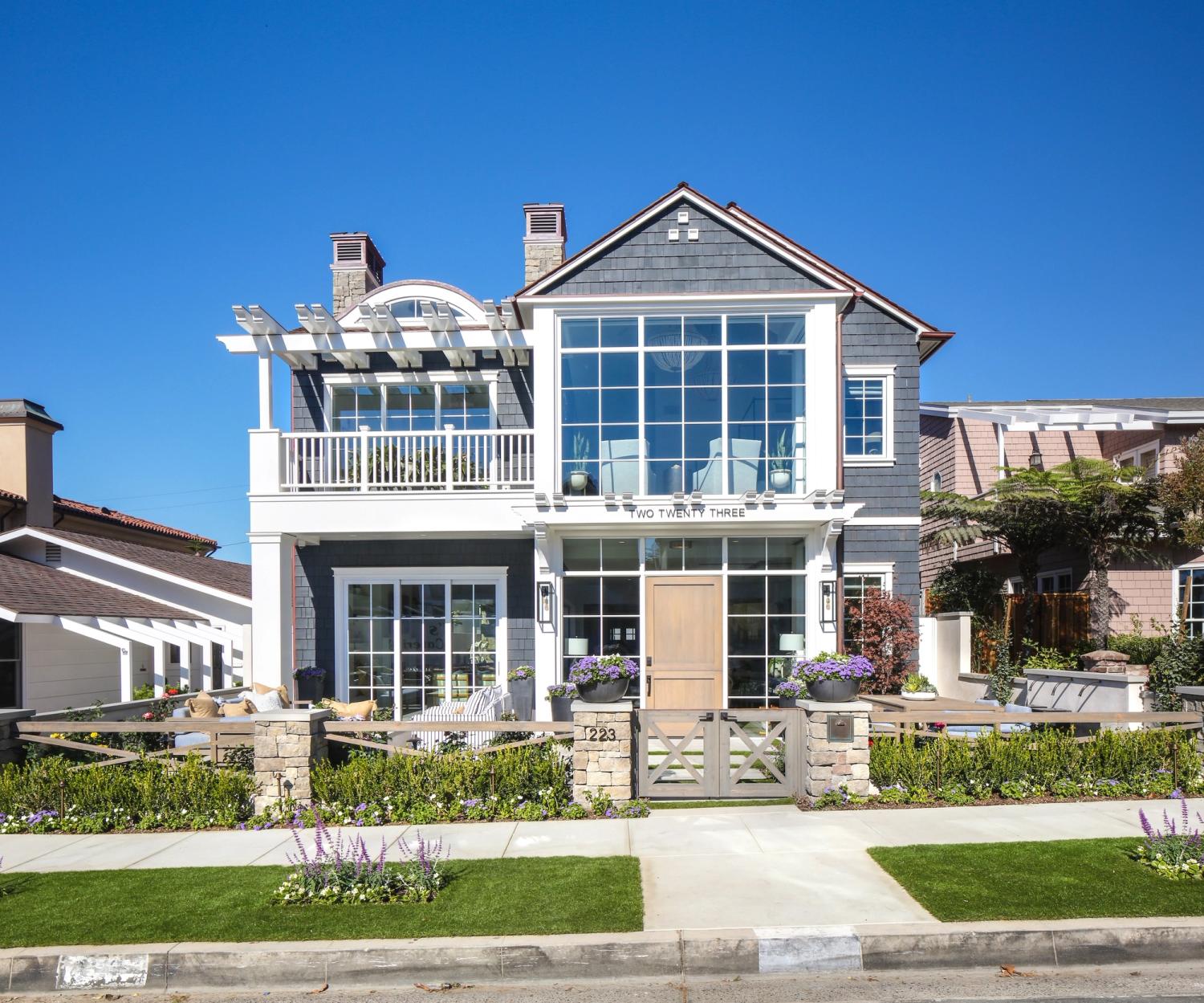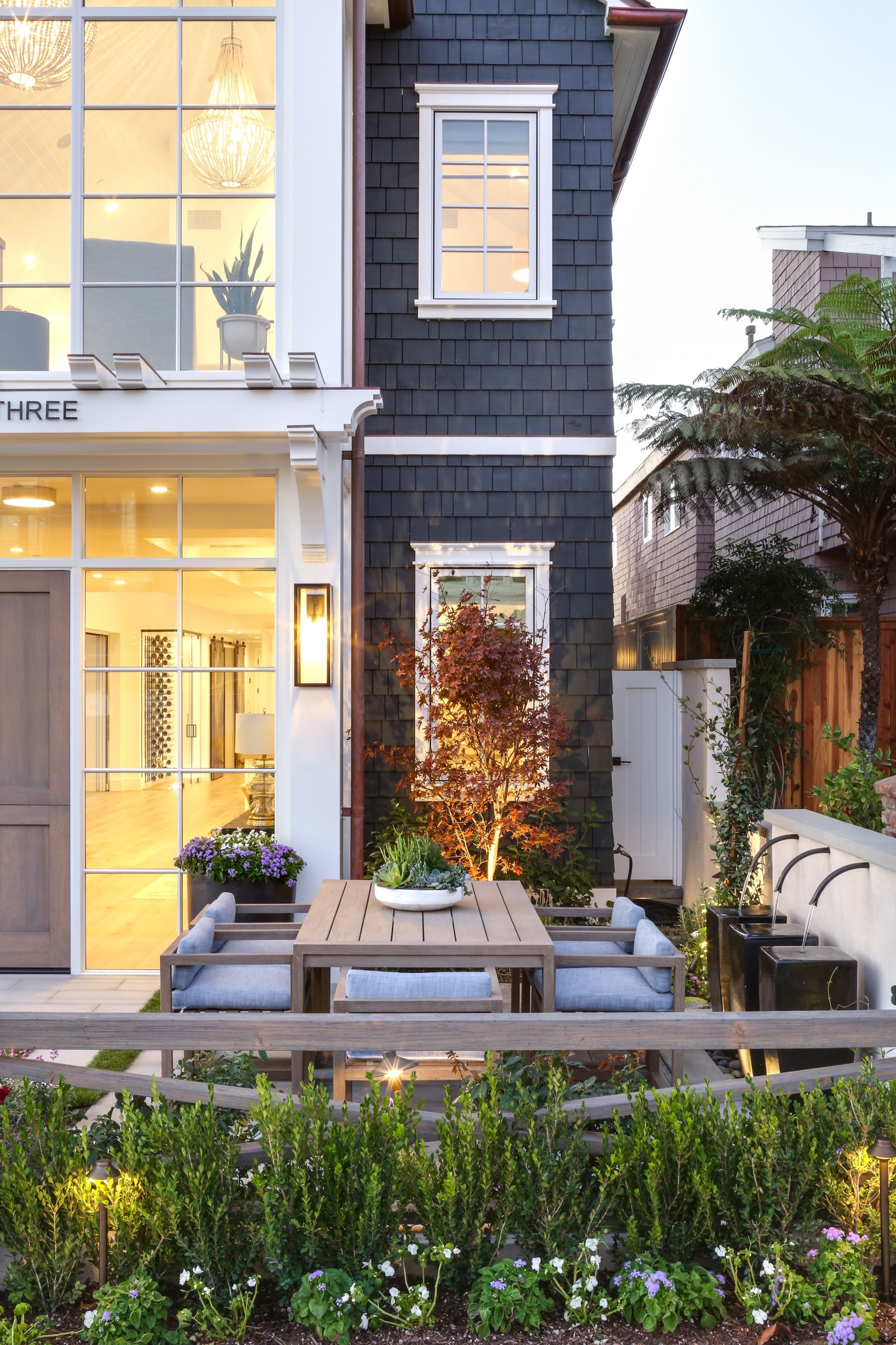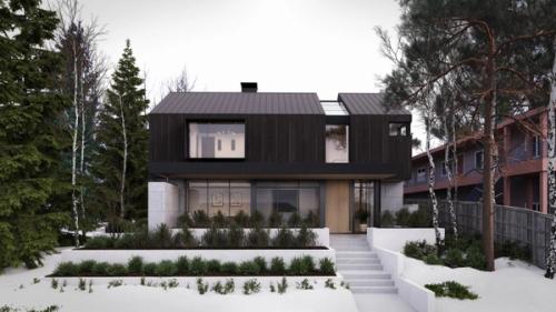 Blue shingles on the facade make way for a light-filled interior, contemporary steel elements and voluminous spaces.