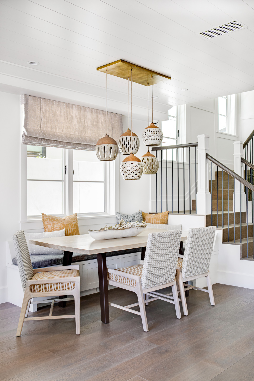 Under-stair closets and bench seating at the dining table allow the home to maximize each square foot for use