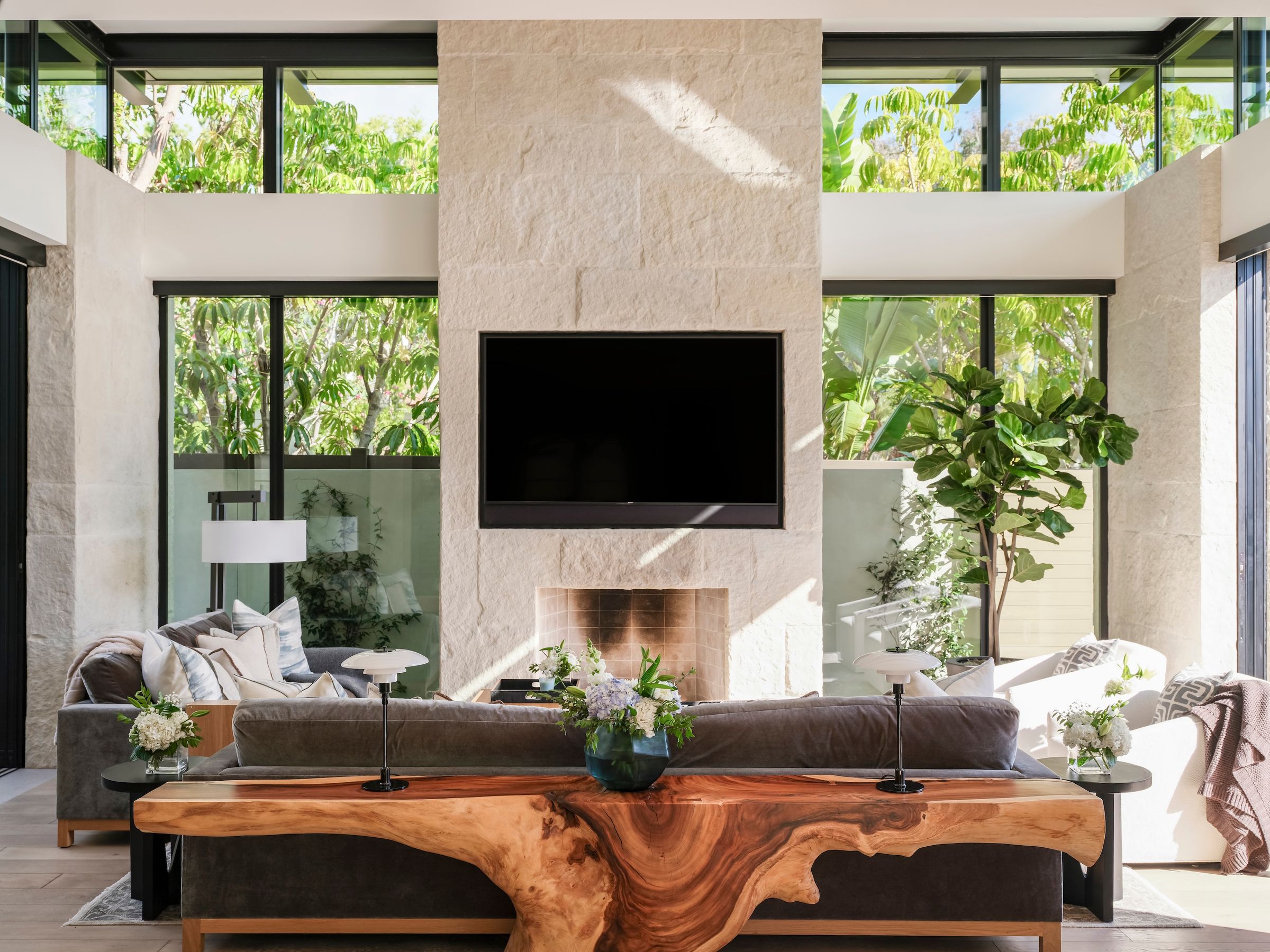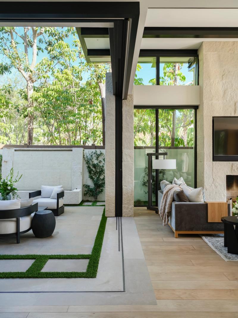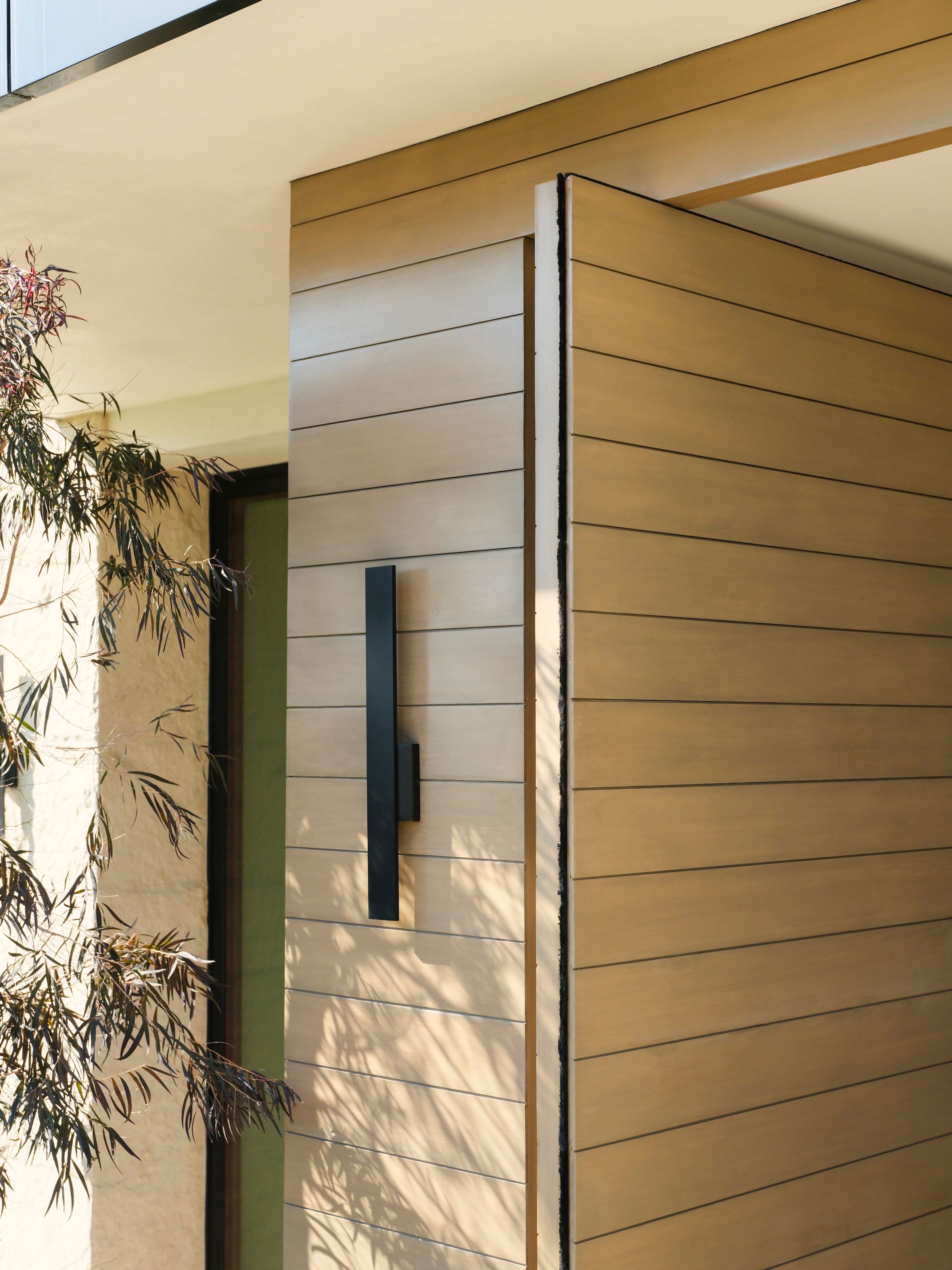 An outward expression of natural wood and metal accents defines a modern home that’s both luxe and livable.