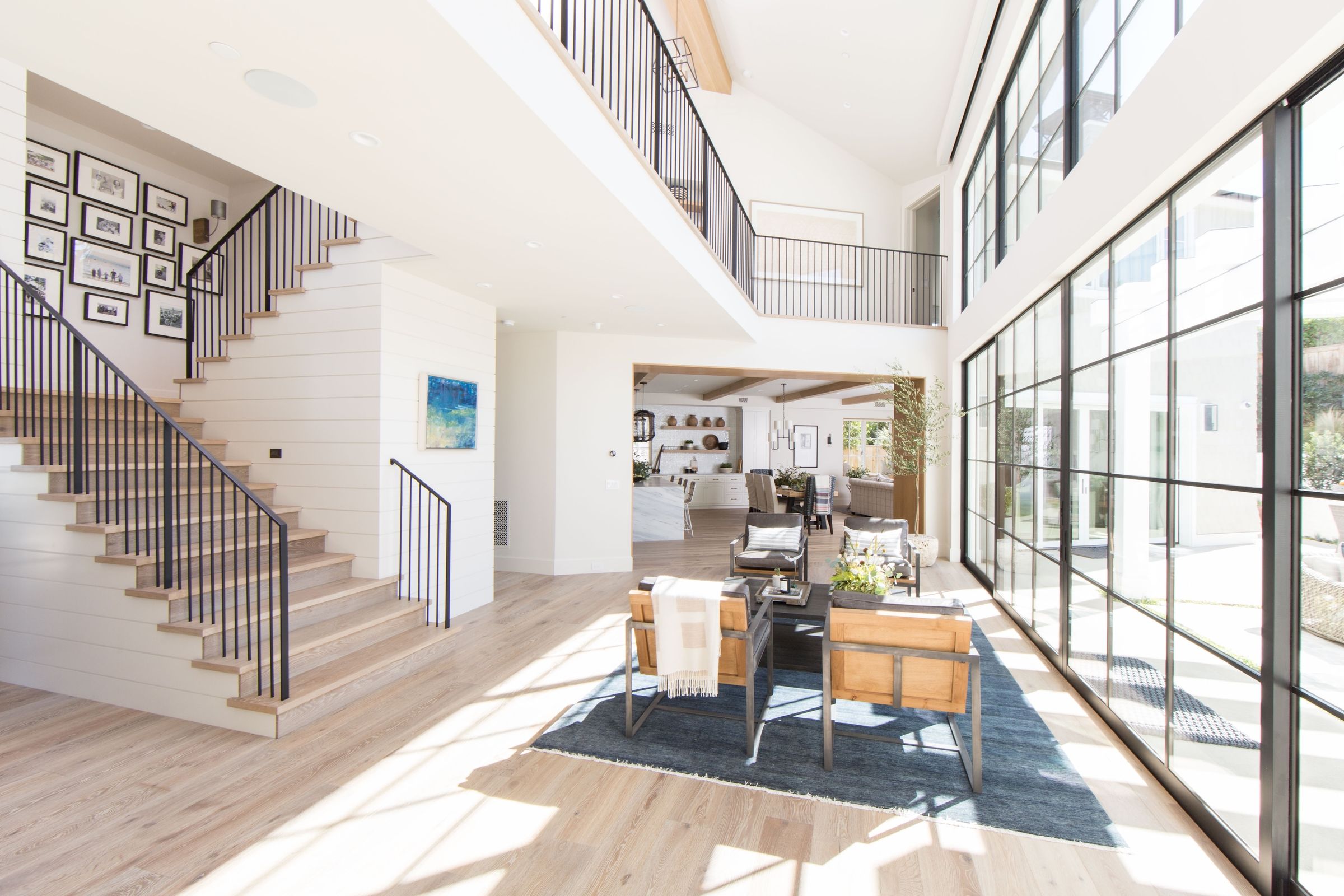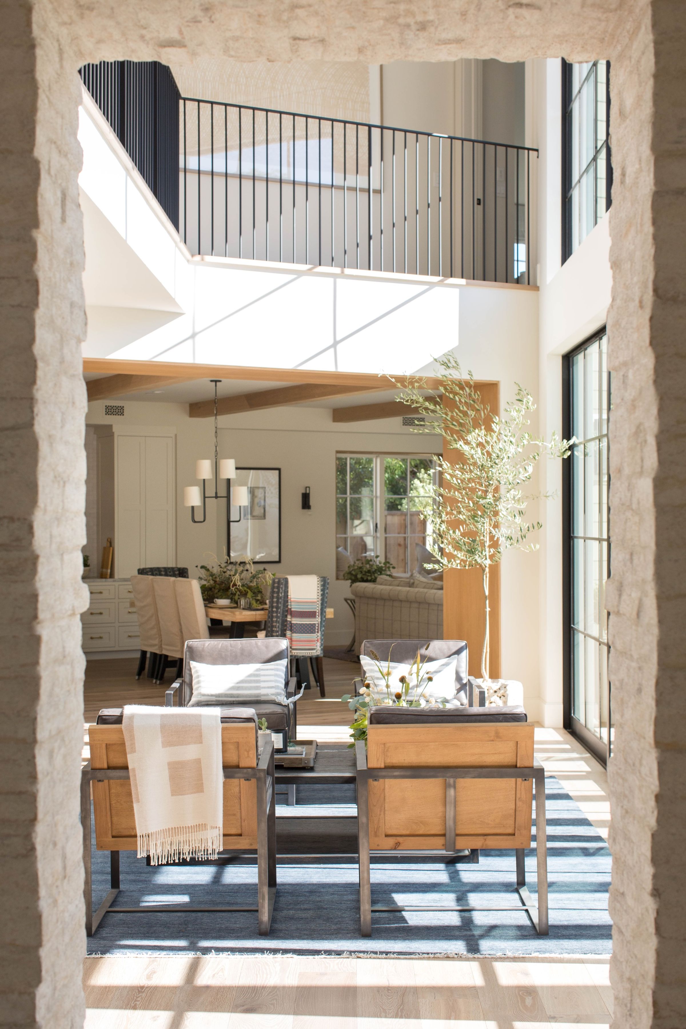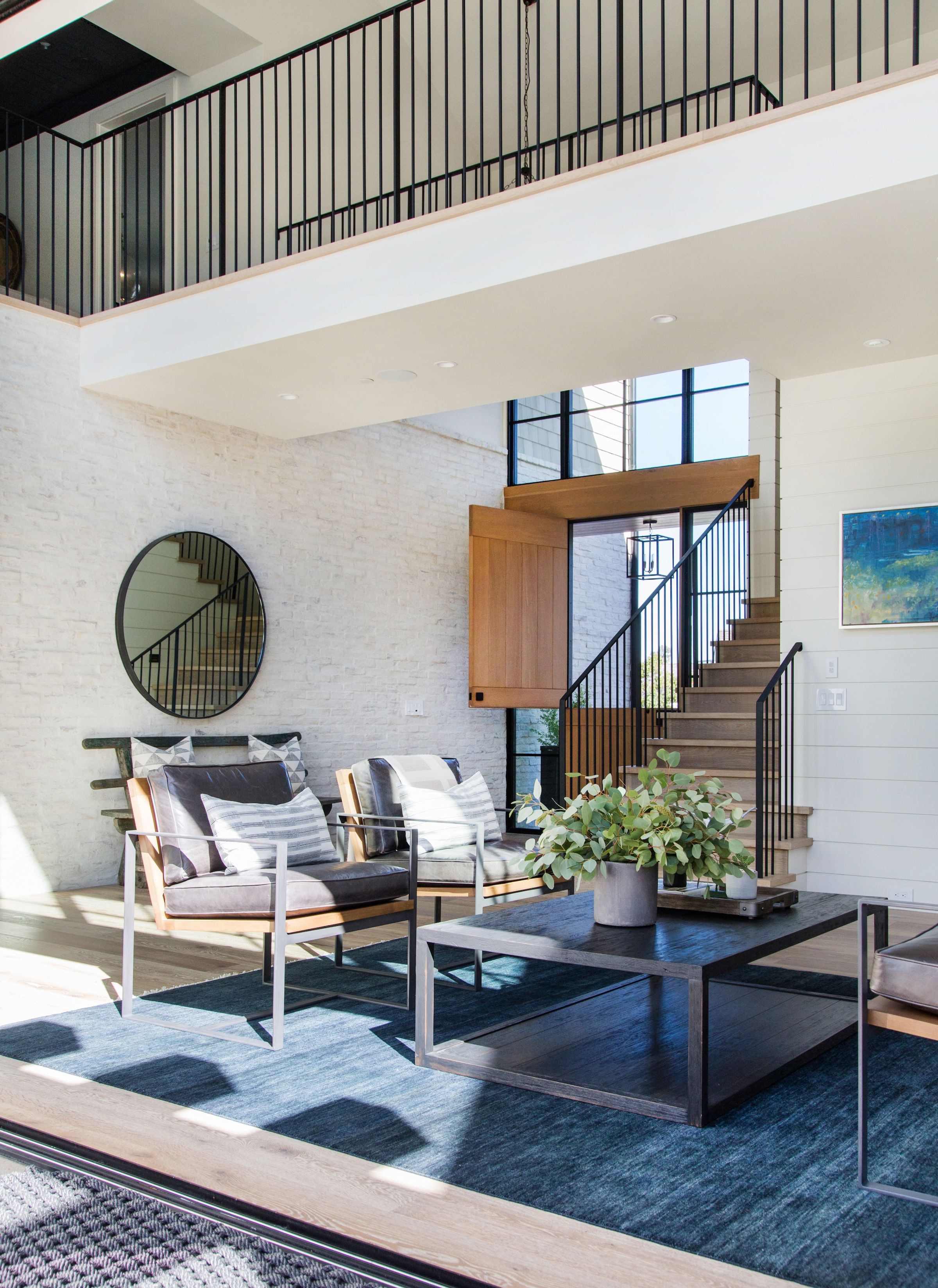 Simple, reserved interiors convey intentionality, complemented by a two-story volume inviting family life and outdoor connection.
