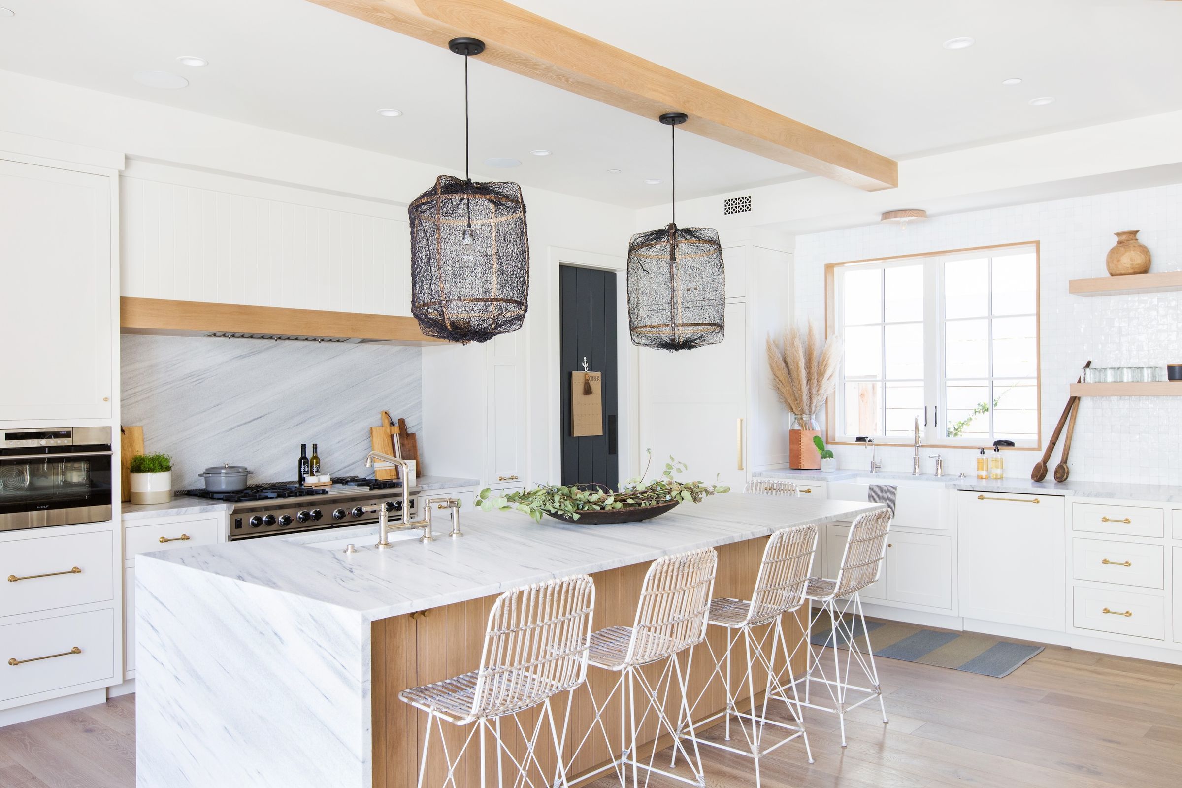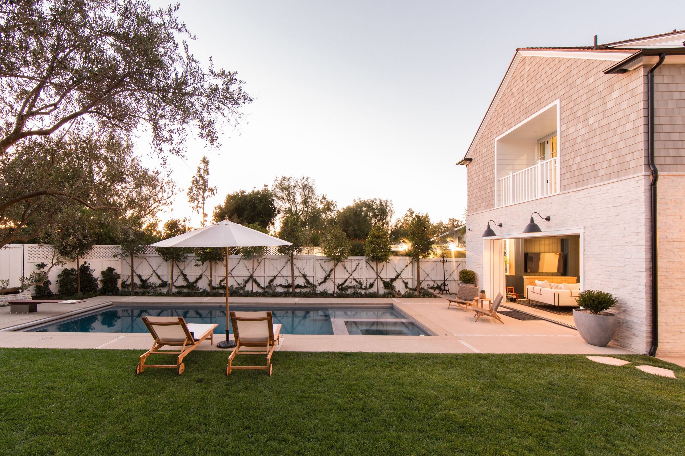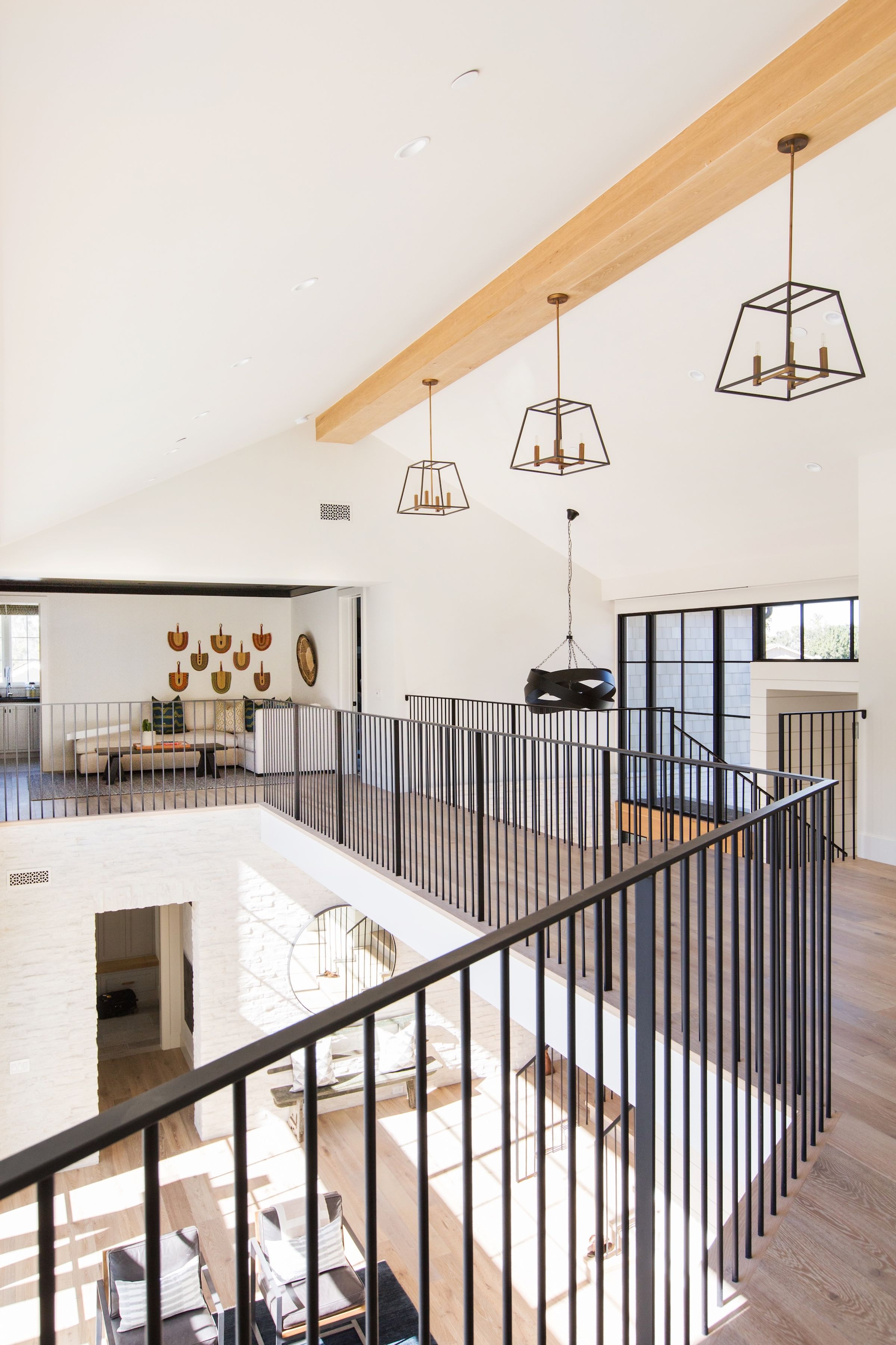 Simple, reserved interiors convey intentionality, complemented by a two-story volume inviting family life and outdoor connection.
