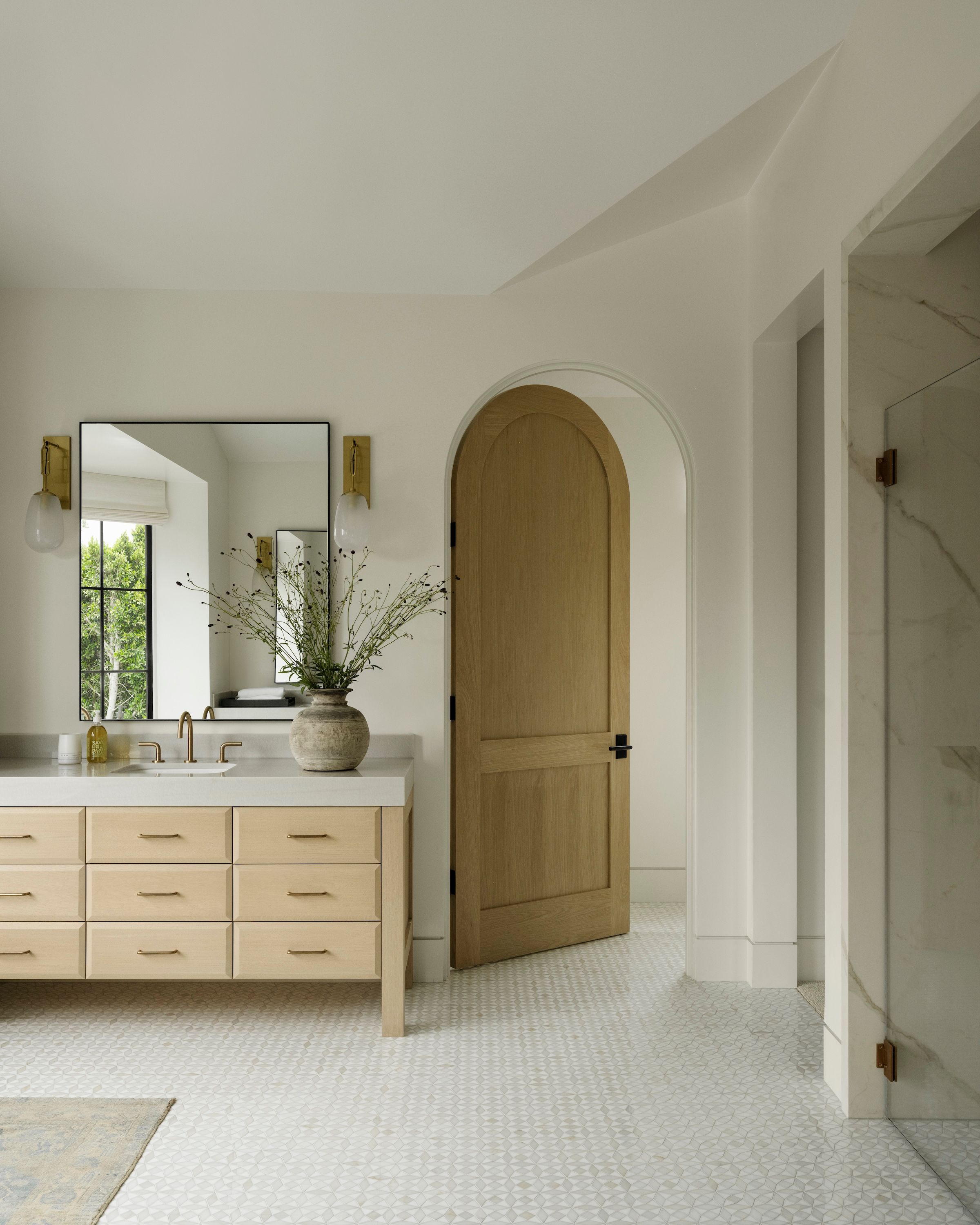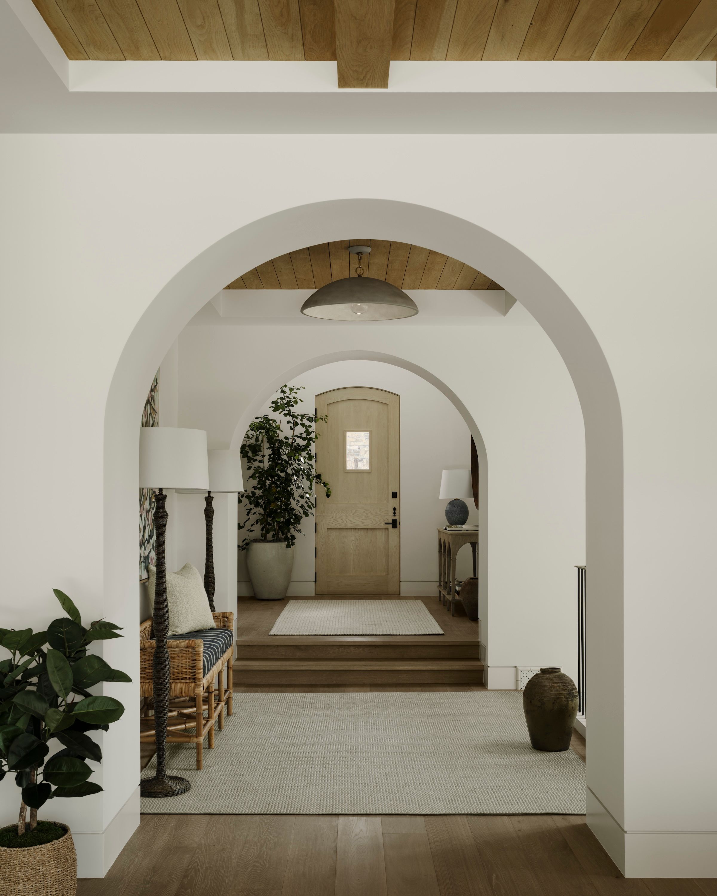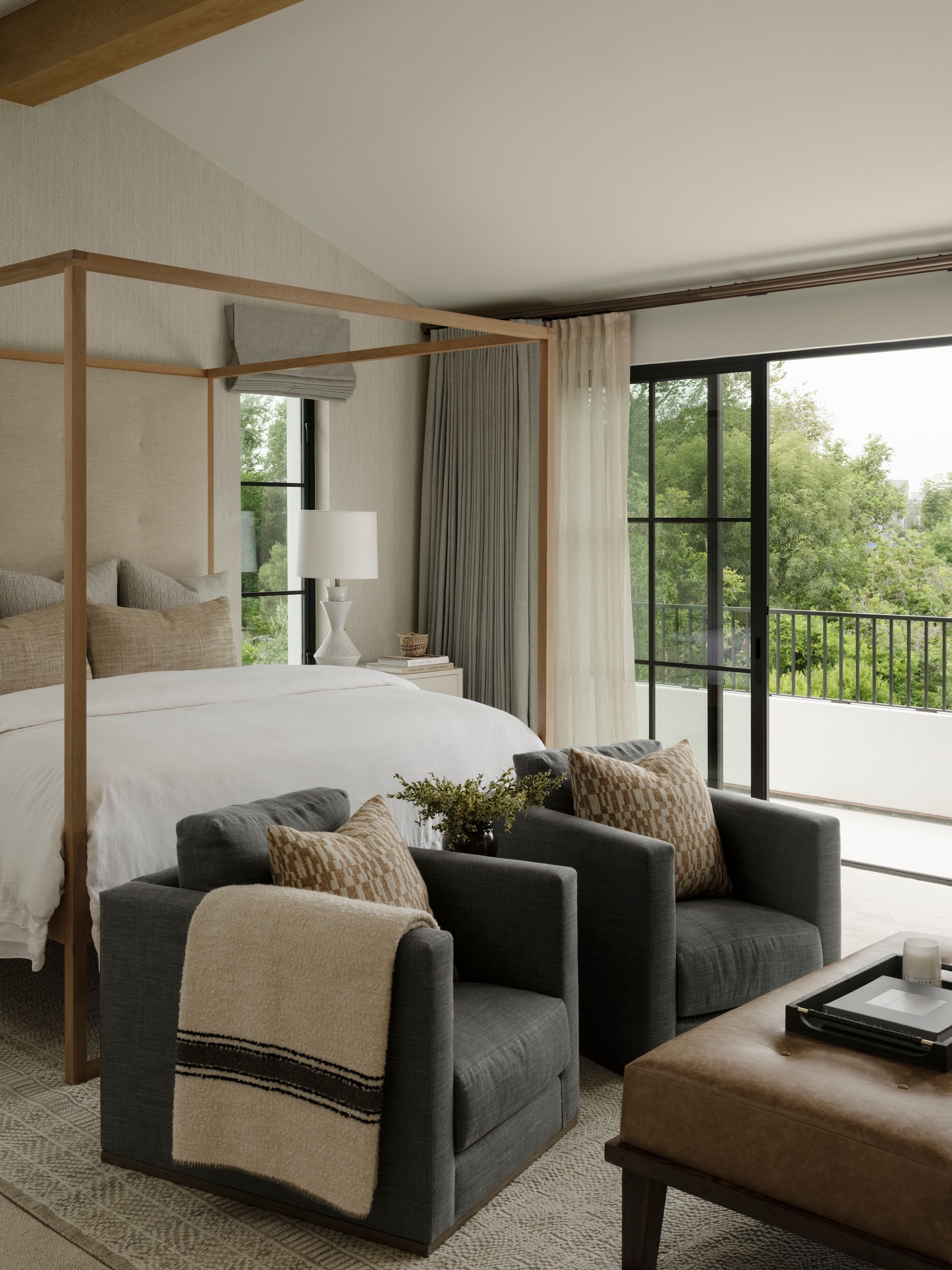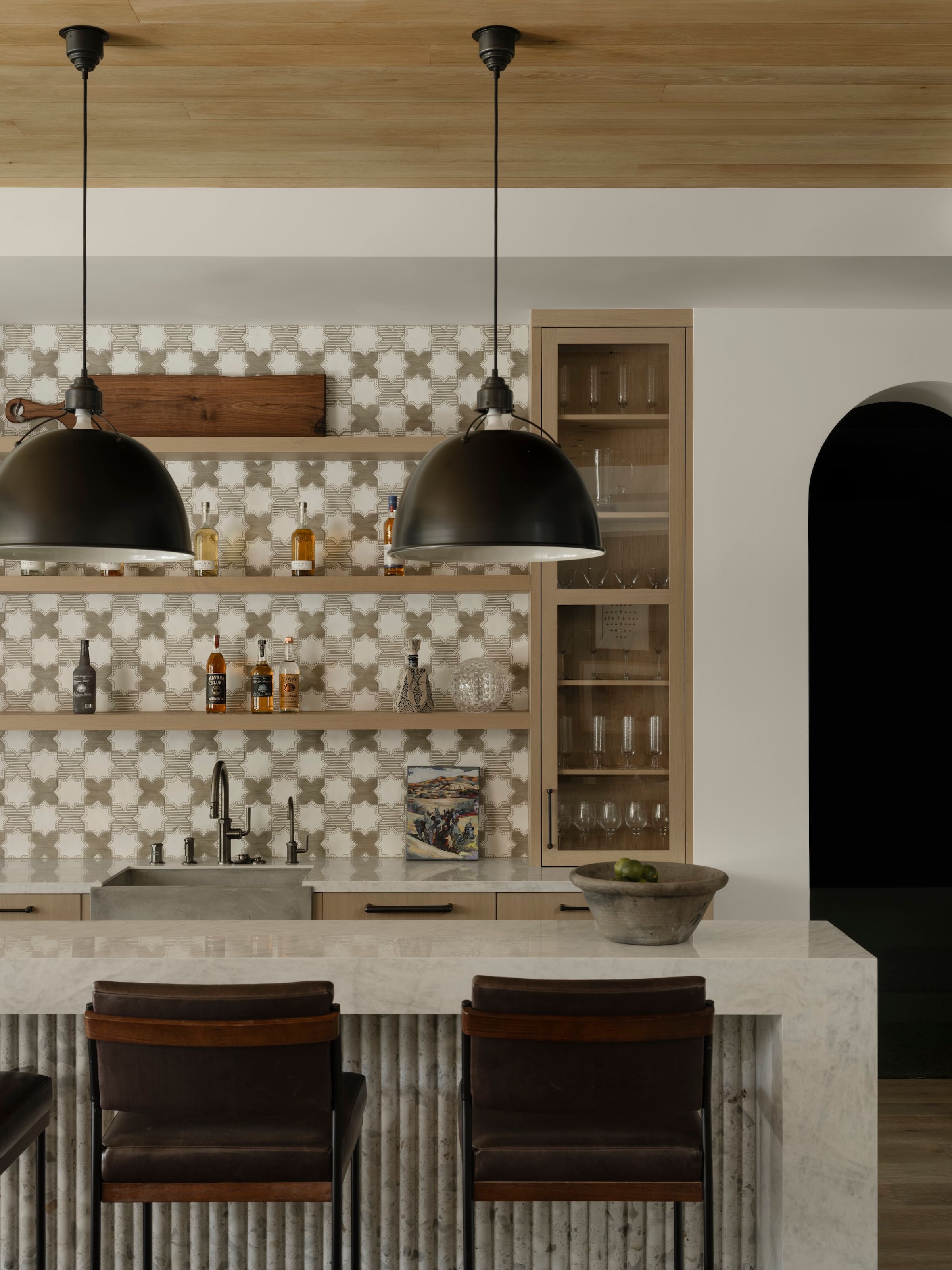 Spanish influences, a sunken, poolside fire pit, and warm wood details shape stylish spaces for gathering and celebration.
