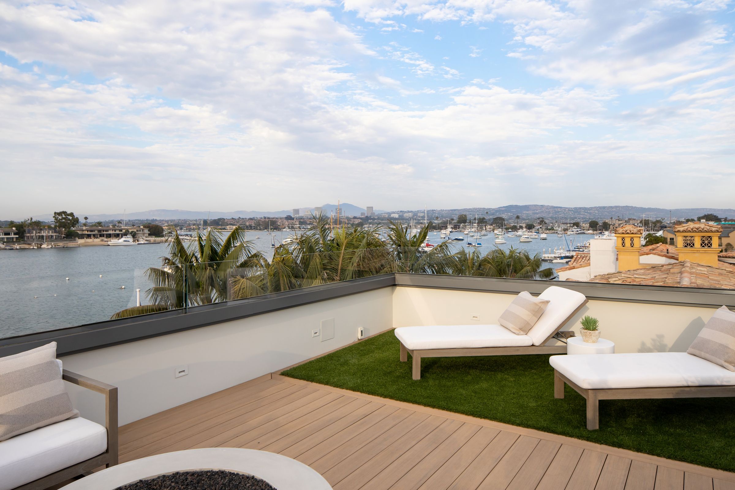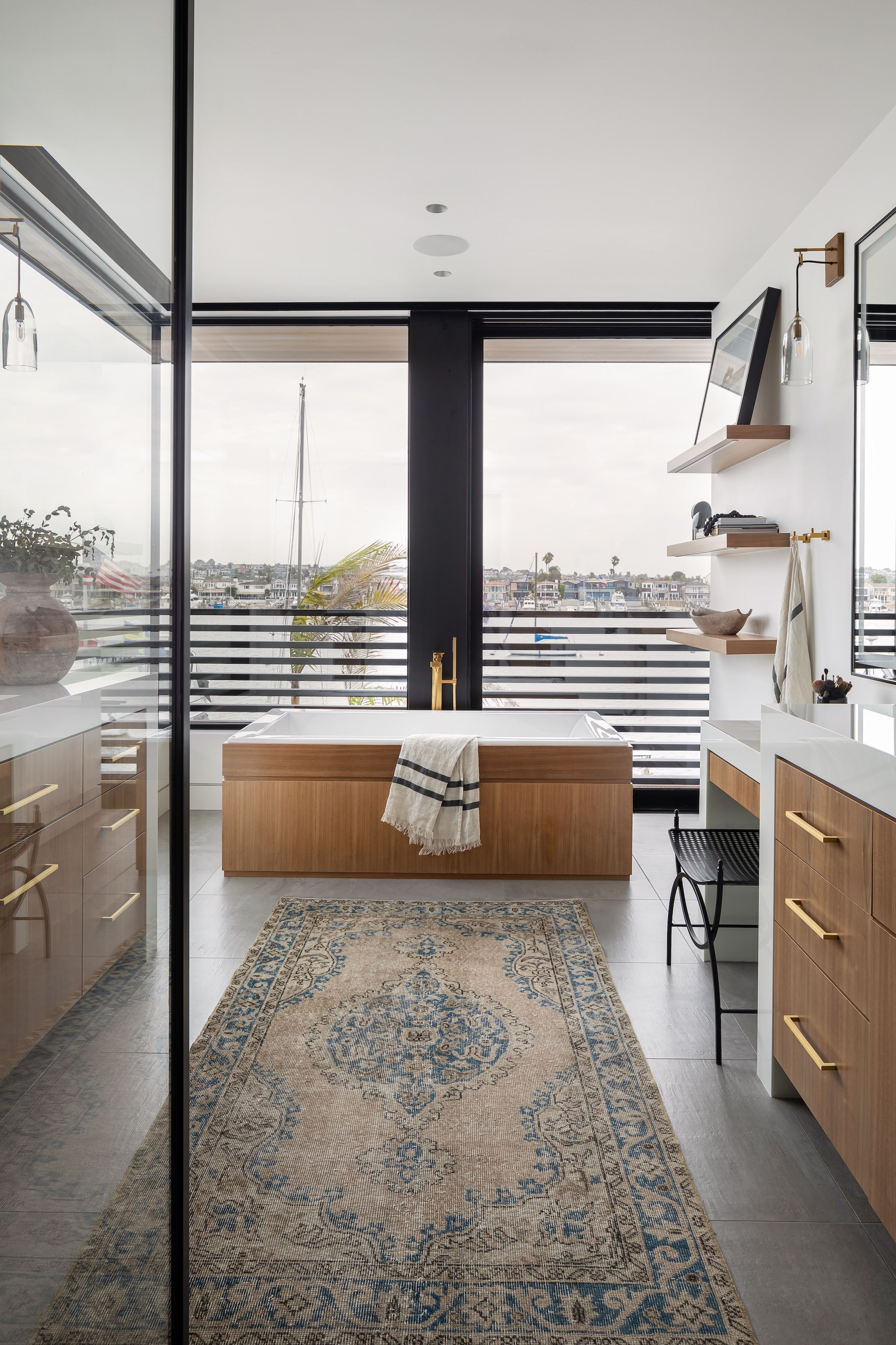 Rooftop decks, a central courtyard, spatial flow and custom glazing enhance the feeling of openness and connection to the harbor.